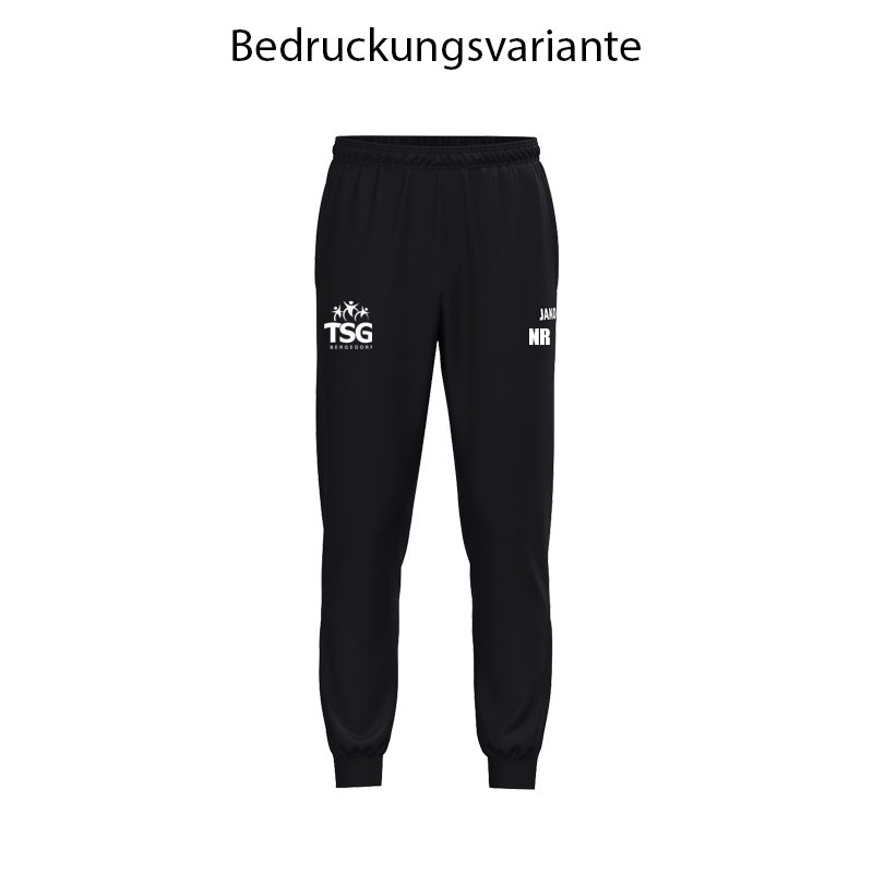 – TSG Trainingshose – passend zur Trainingsjacke – Seitentaschen – Beinabschluss mit Reißverschluss und Ripp – Elastischer Bund mit Kordelzug
